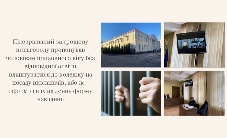 Так, підозрюваний за грошову винагороду пропонував чоловікам призовного віку без відповідної освіти влаштуватися до коледжу на посаду викладачів, або ж – оформити їх на денну форму навчання.