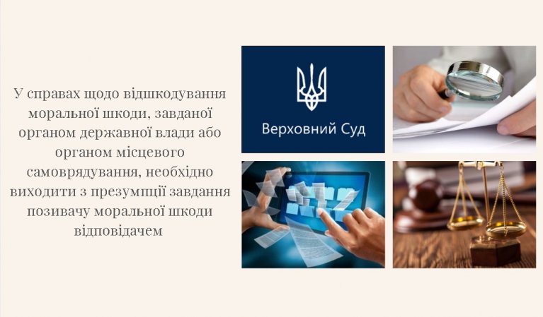 КЦС ВС зазначив, що апеляційний суд необґрунтовано відмовив у позові, не врахувавши, що у справах щодо відшкодування моральної шкоди, завданої органом державної влади або органом місцевого самоврядування, необхідно виходити з презумпції завдання позивачу моральної шкоди відповідачем та обов’язку саме відповідача спростувати таку презумпцію. Відповідач у цій справі матеріально-правову презумпцію не спростував.