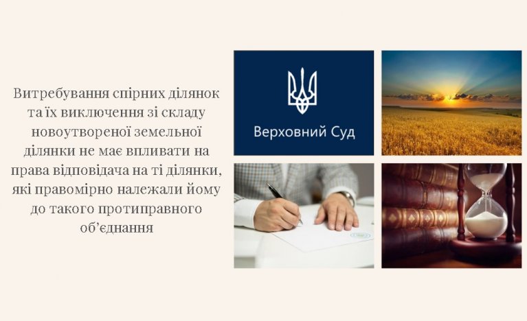 Перед Великою Палатою ВС постало питання щодо визначення ефективного способу захисту прав власника земельної ділянки, яка була об’єднана з іншими земельними ділянками, внаслідок чого сформована нова земельна ділянка, яка включає як земельні ділянки, що належать позивачу, так і земельні ділянки, що належать відповідачу.