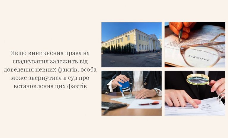 Якщо виникнення права на спадкування залежить від доведення певних фактів, особа може звернутися в суд про встановлення цих фактів.