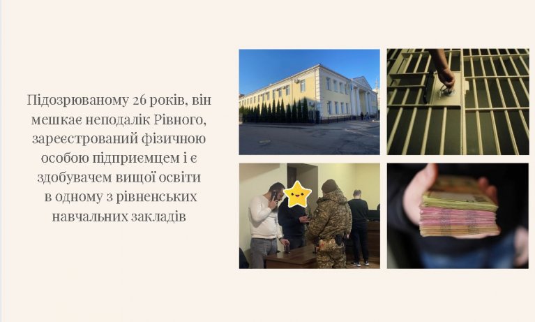 Підозрюваному 26 років, він мешкає неподалік Рівного, зареєстрований фізичною особою підприємцем і є здобувачем вищої освіти в одному з місцевих навчальних закладів. Від часу повідомлення йому про підозру та обрання в суді запобіжного заходу, він перебуває під домашнім арештом у нічний час, як і його двоє спільників. Третій поплічник — брат-близнюк — оголошений у розшук, оскільки самовільно залишив військову частину й, окрім цього кримінального провадження, в якому він також фігурує, щодо нього триває досудове розслідування у кримінальному провадженні за ч. 5 ст. 407 Кримінального кодексу України.