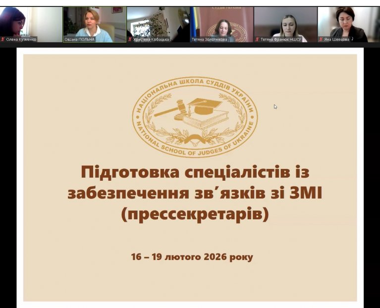 Над підвищенням рівня кваліфікації за стандартизованою програмою НШСУ працюють спеціалісти із забезпечення зв’язків зі ЗМІ місцевих, апеляційних судів, Вищого антикорупційного суду та Верховного Суду. До чотириденних навчань онлайново долучилась і прессекретарка Рівненського апеляційного суду Олена Кузменко.